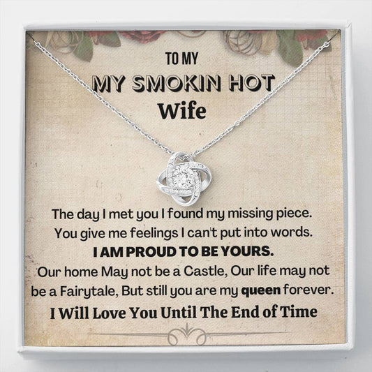 To My Stunning Smokin' Hot Wife | 14k White Gold Plated Love Knot Necklace