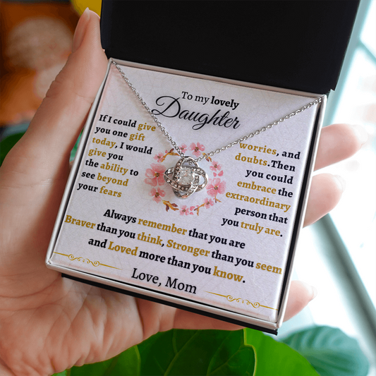 Gift for Daughter from Mom - Be Brave - Love knot Necklace