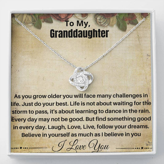 Gift for Granddaughter 14k white gold plated love knot necklace with empowering message card