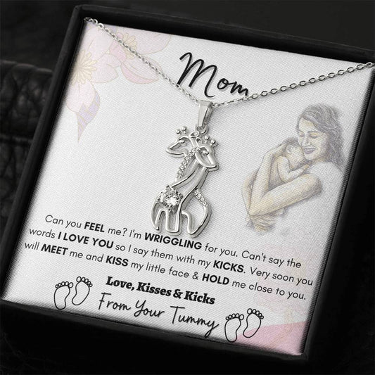 Gift For Expecting Mom. Mother's Day Gift, Baby Shower Gift. Giraffe Necklace With Message Card.