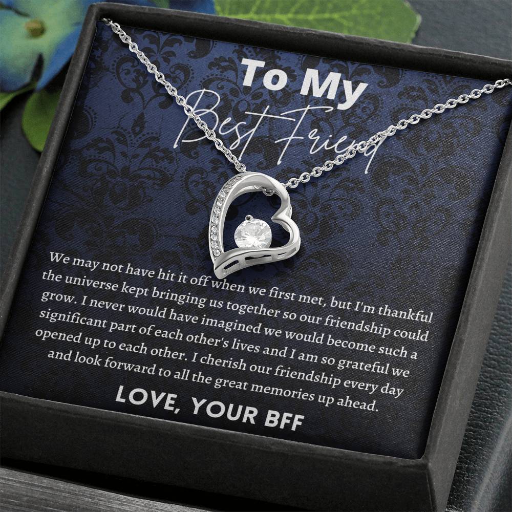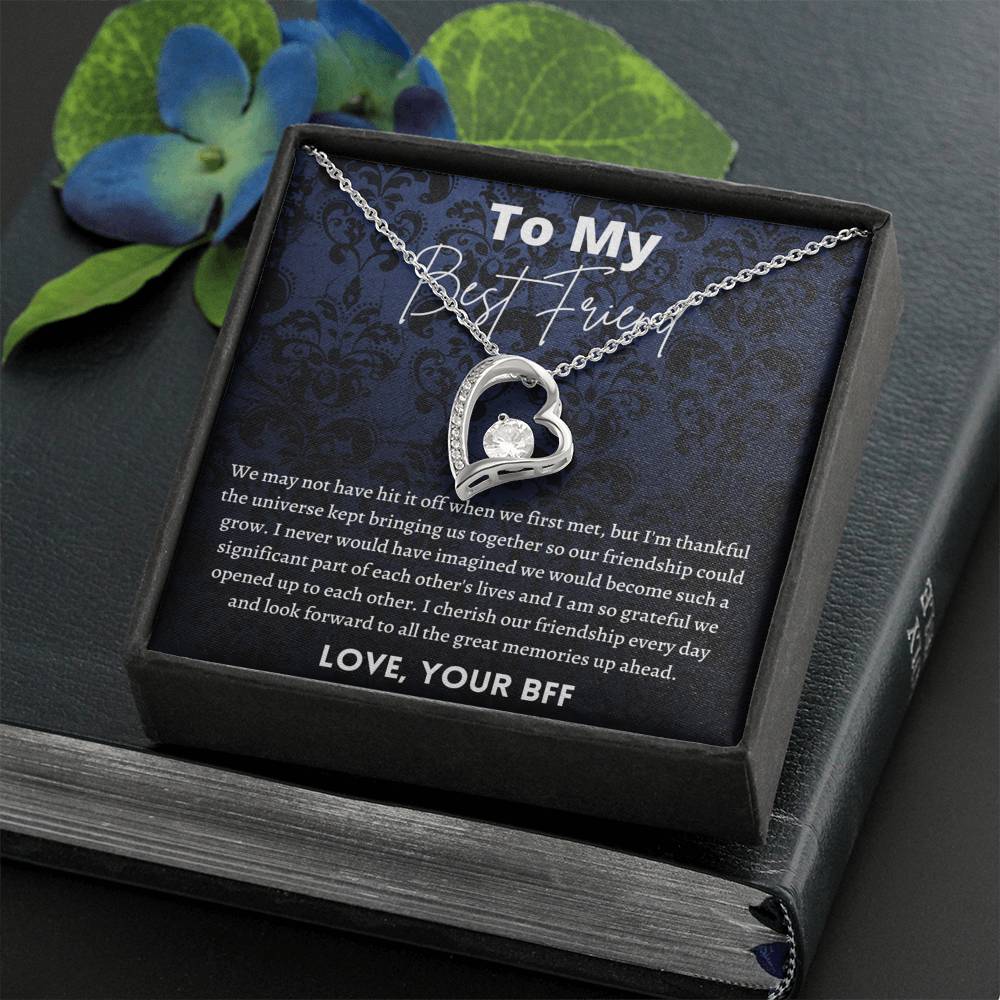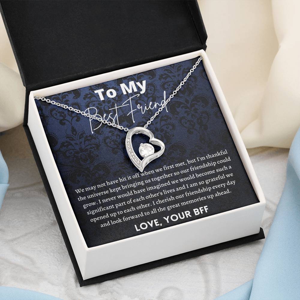 This dazzling Forever Love Necklace features a polished heart pendant surrounding a flawless 6.5mm cubic zirconia, embellished with smaller crystals adding extra sparkle and shine.