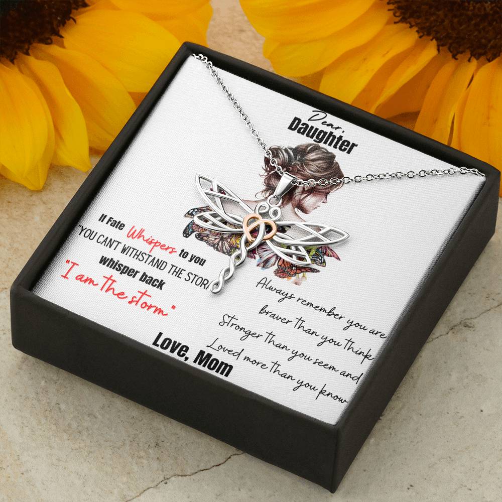 Dear Daughter Dragonfly Necklace From Mom Gift For Daughter From Mom, Birthday Gift For Daughter From Mom, Graduation Gift For Daughter I Am The Storm Necklace