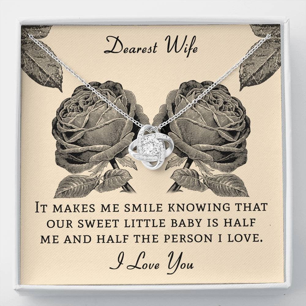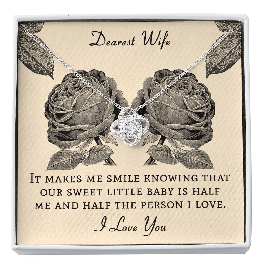 The Love Knot Necklace represents an unbreakable bond between two souls. This symbol of eternal love is a forever favorite and trending everywhere. Surprise your loved one with this gorgeous gift today! The beautiful Love Knot is crafted with brilliant 14k white gold over stainless steel, and swings from an adjustable cable chain, fastened securely with a lobster clasp. The center cubic zirconia crystal measures 6mm in diameter, and is surrounded with smaller cubic zirconia, showcasing added sparkle and shine to this gorgeous gift. You must see it for yourself! Specifications: • 14k white gold over stainless steel • 6mm round cut cubic zirconia stone • 18"-22" adjustable cable chain necklace • Lobster clasp attachment