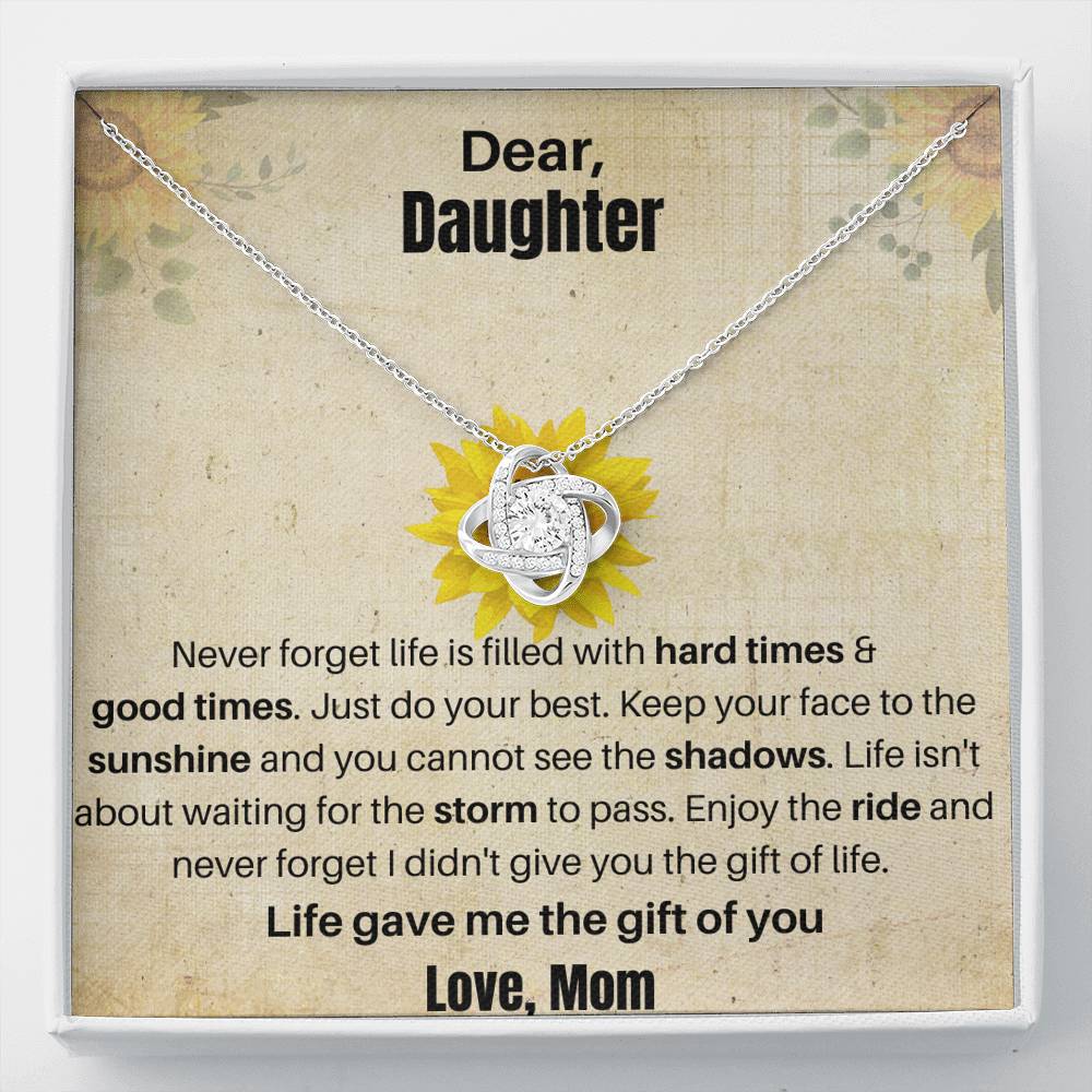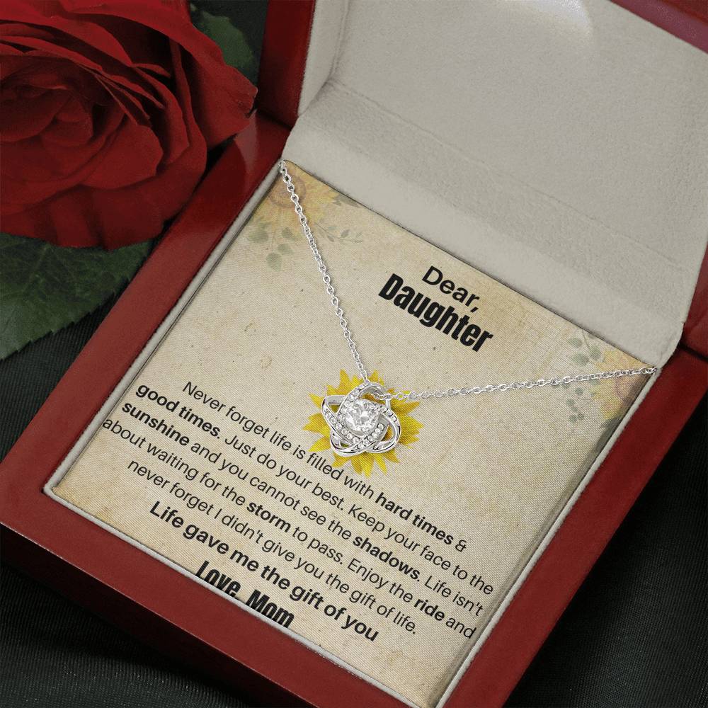 Gift for Daughter 14K white gold plated Loveknot necklace with empowering message card