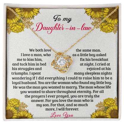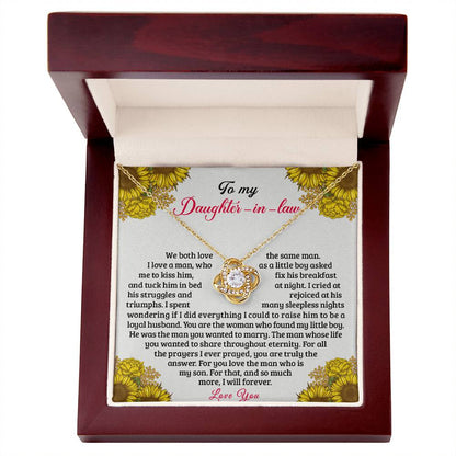 To My Daughter-in-Law: Love Knot Necklace with Heartfelt Message from Mother-in-Law
