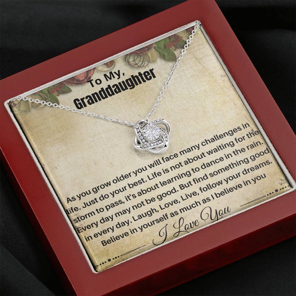 Gift for Granddaughter 14k white gold plated love knot necklace with empowering message card