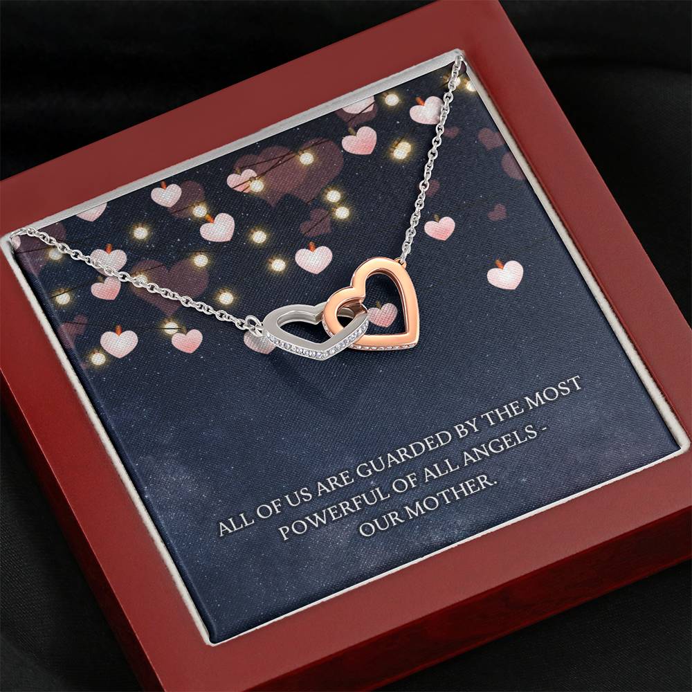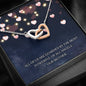 Two hearts embellished with Cubic Zirconia stones, interlocked together as a symbol of never-ending love. Made with high quality polished surgical steel. Cable chain measures 18 inches with a 4 inch extension, and fastens with a lobster clasp.