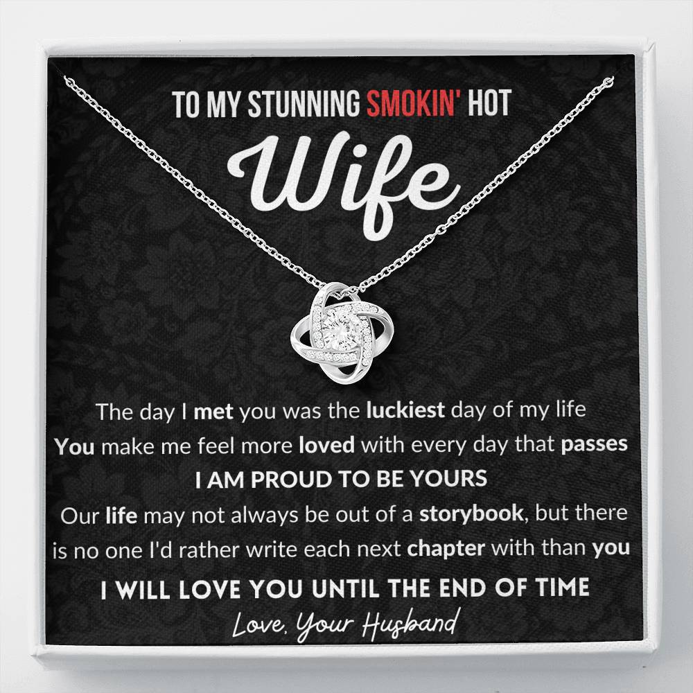 Gift for Wife - 14K White Gold plated Love Knot Necklace With Message Card - Next Chapter