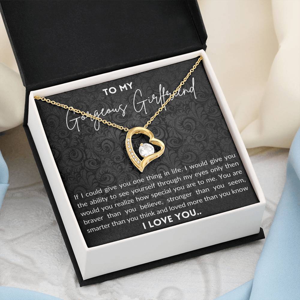 This dazzling Forever Love Necklace features a polished heart pendant surrounding a flawless 6.5mm cubic zirconia, embellished with smaller crystals adding extra sparkle and shine.