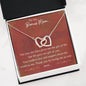 Two hearts embellished with Cubic Zirconia stones, interlocked together as a symbol of never-ending love. Made with high quality polished surgical steel. Cable chain measures 18 inches with a 4 inch extension, and fastens with a lobster clasp.