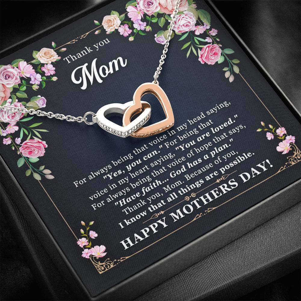 Mothers Day Gift For Mom Interlocking Hearts Necklace With Heartwarming Card Thank You Mom