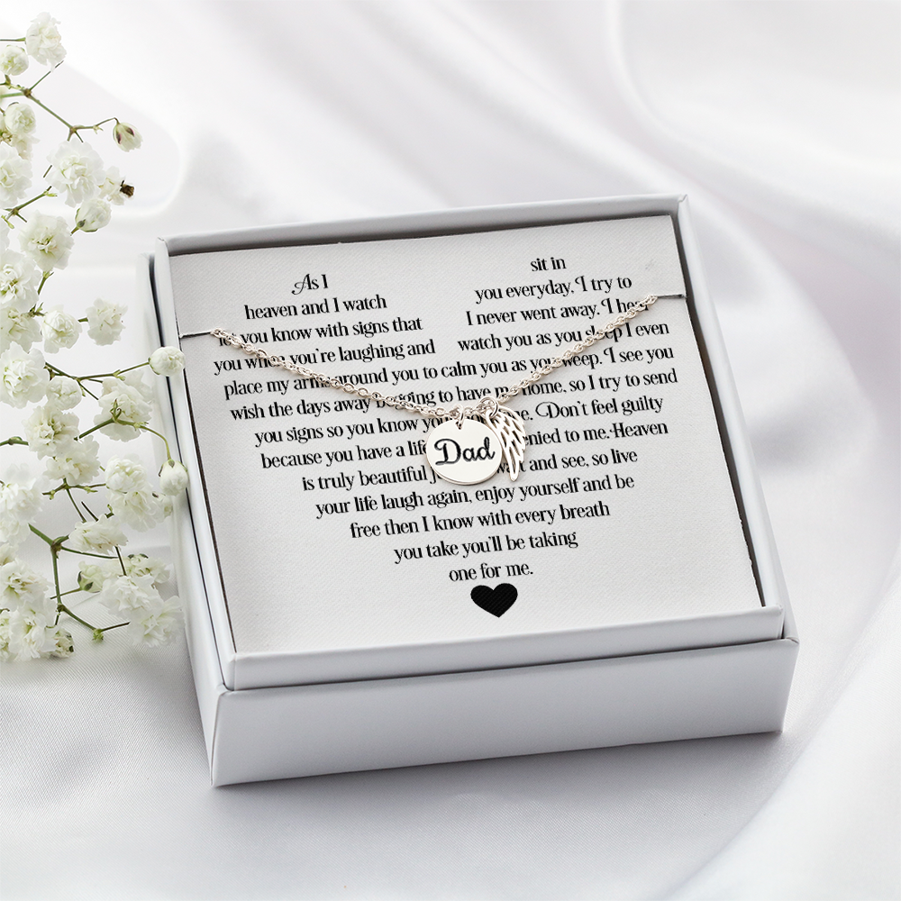 Remembrance Necklace Dad Engraved With Angel Wings As I Sit In Heaven