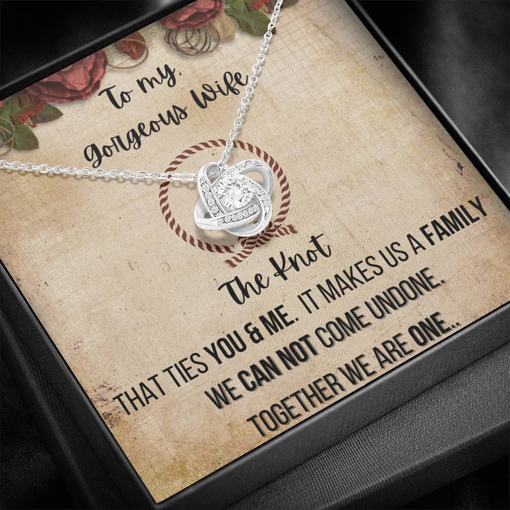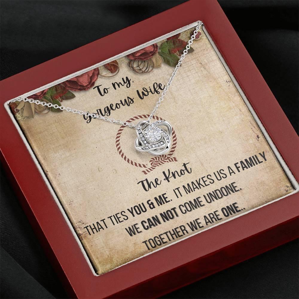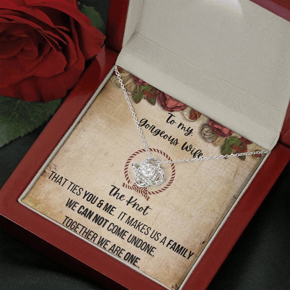 To My Gorgeous Wife 14K White Gold Plated Love Knot Necklace