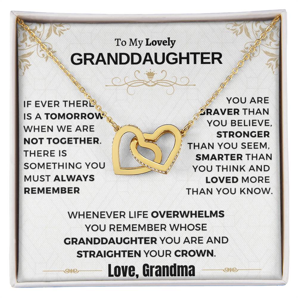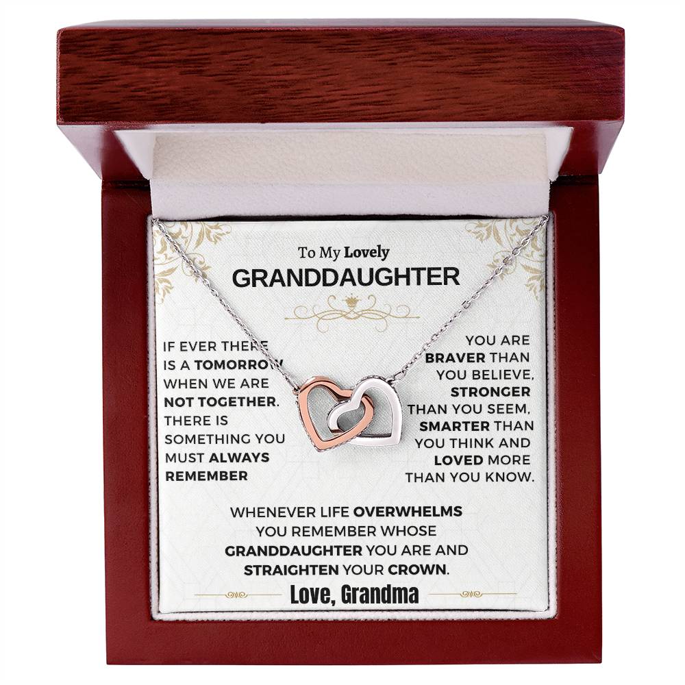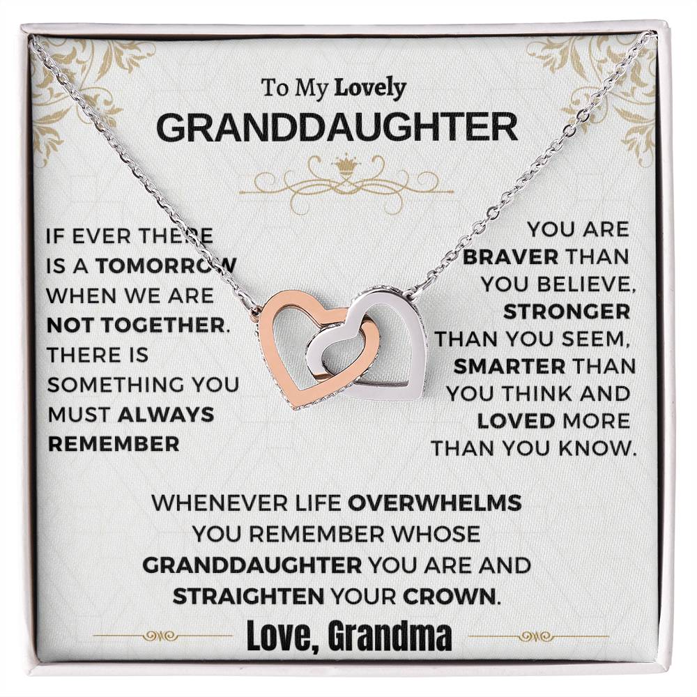 Exclusive Message Card: "TO MY LOVELY GRANDDAUGHTER - If ever there is tomorrow when we are not together. There is something you much always remember. You are braver than you believe, stronger than you seem, smarter than you think and loved more than you know. Whenever life overwhelms you remember whose Granddaughter you are and straighten your crown. LOVE, GRANDMA"