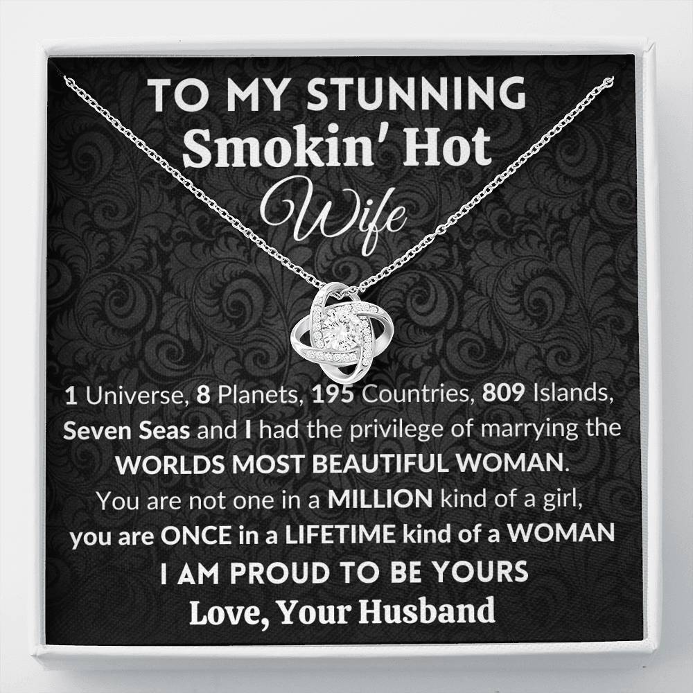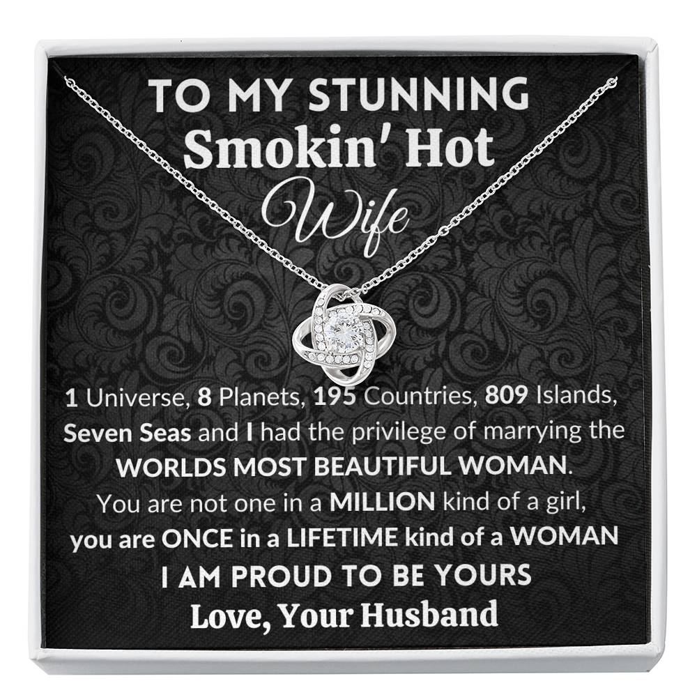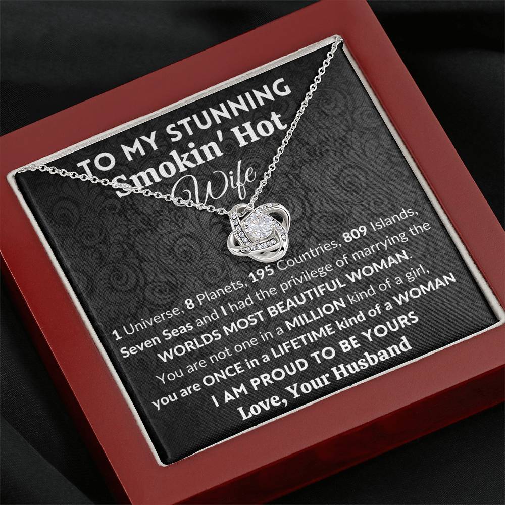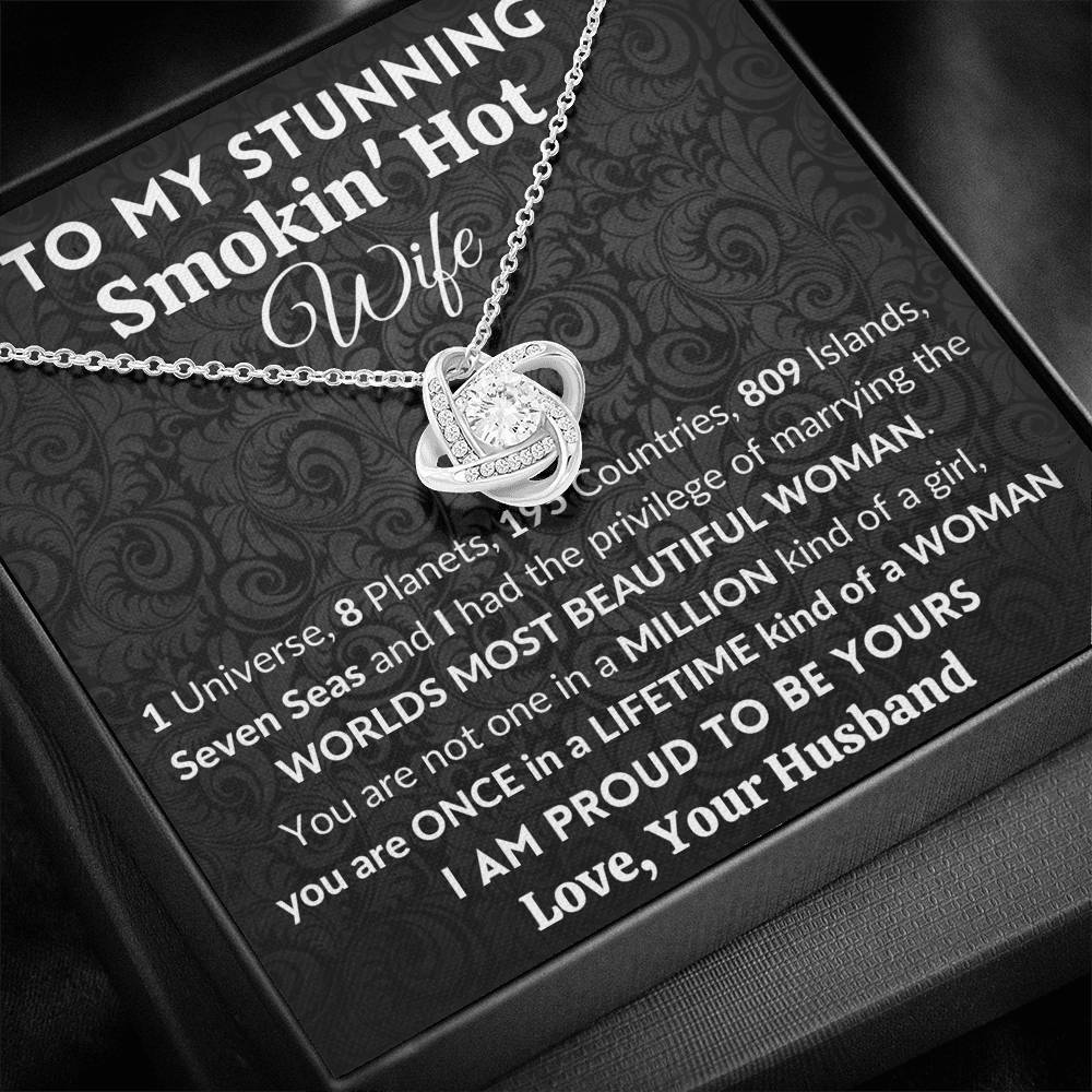 To My Stunning Smokin' Hot Wife | 14k White Gold Plated Love Knot Necklace